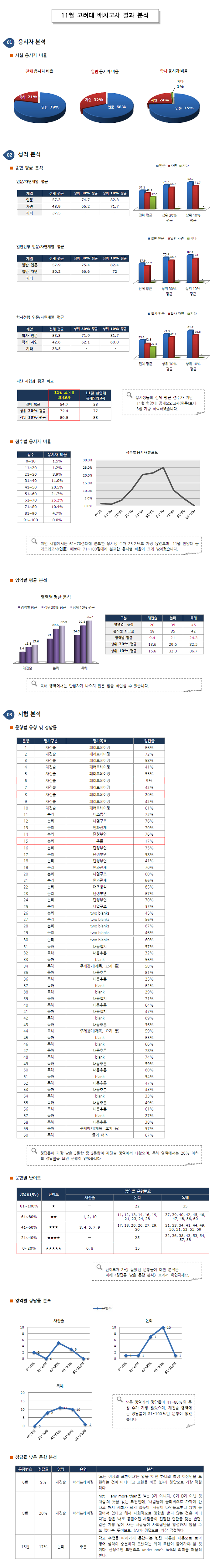 글제목 [공지] 2015년 11월 고려대 KUET 배치고사 결과 분석