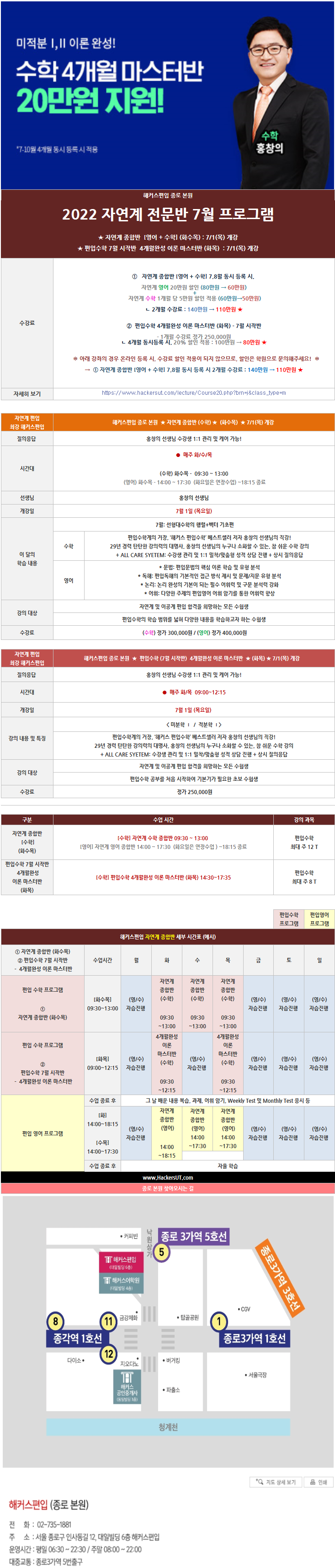 글제목 해커스편입 [종로 본원] 7월 수학종합반 大개강 안내 ★ 7/1(목) 개강 ★