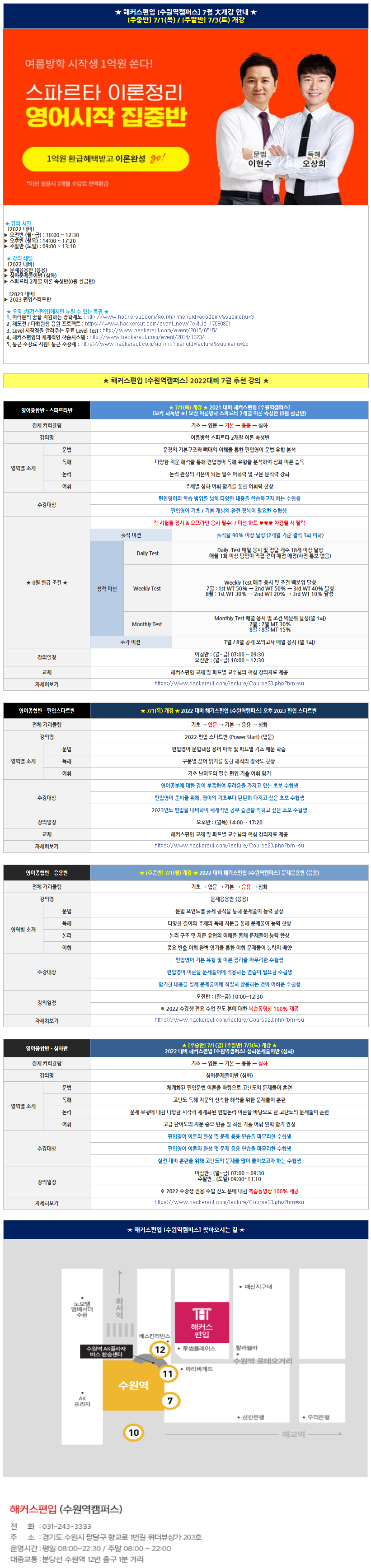 글제목 해커스편입 [수원역캠퍼스] 7월 영어종합반 大개강 "주중반 7/1(목) 개강"