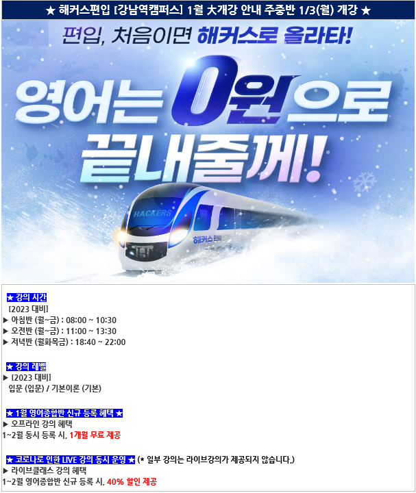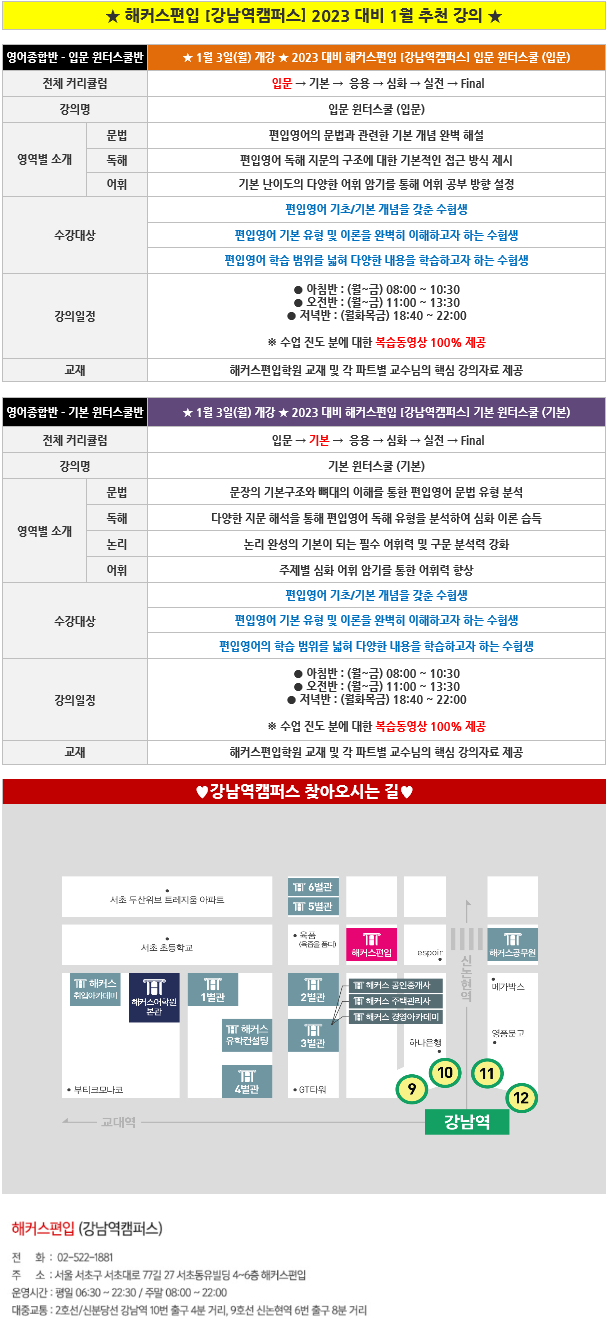 글제목 ♥♥♥ 해커스편입 강남역캠퍼스 <1월 영어종합반 大개강> ♥♥♥
