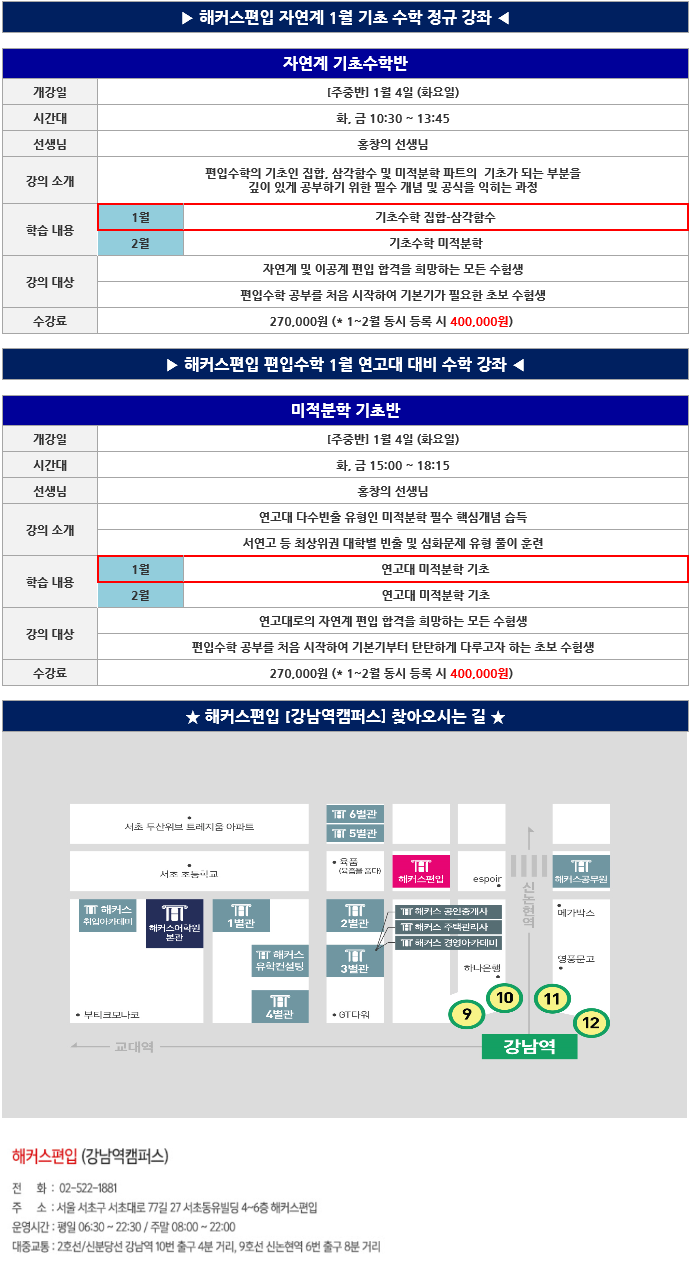 글제목 ♥♥♥ 해커스편입 강남역캠퍼스 <1월 수학종합반 大개강> ♥♥♥