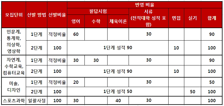 2. 전형 요소 변경 예정 사항 (일반/ 학사/ 농어촌/ 특성화고교 전형 공통)