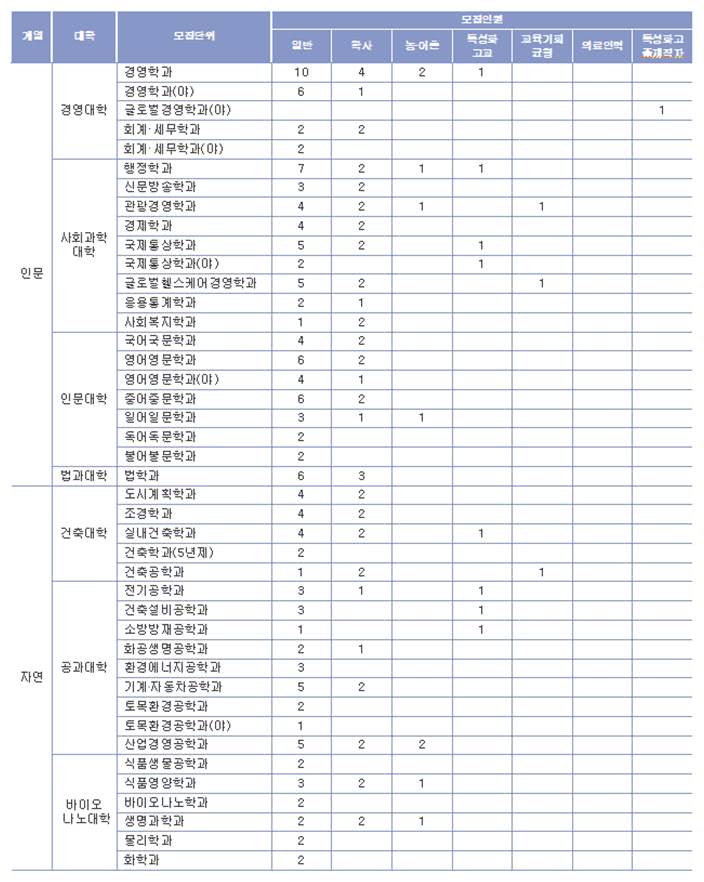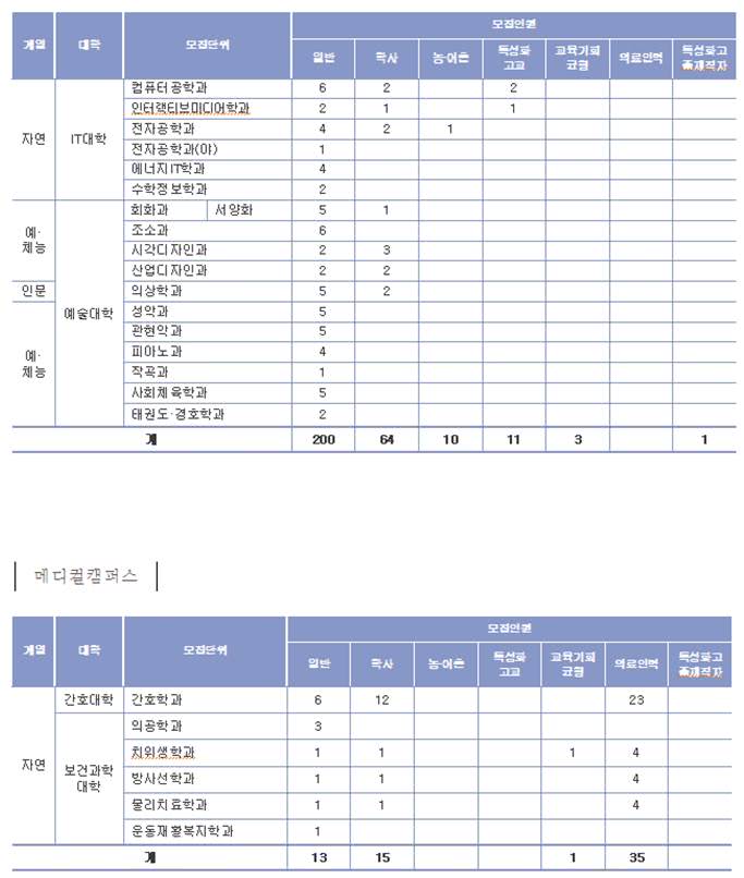 ※ 전형유형 : 일반 편입학, 학사 편입학, 농어촌 학생 편입학, 전문계(특성화)고교 편입학, 의료인력 편입학