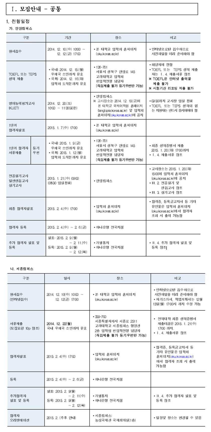 [2015학년도] 고려대학교(공통) 모집요강 안내드립니다.