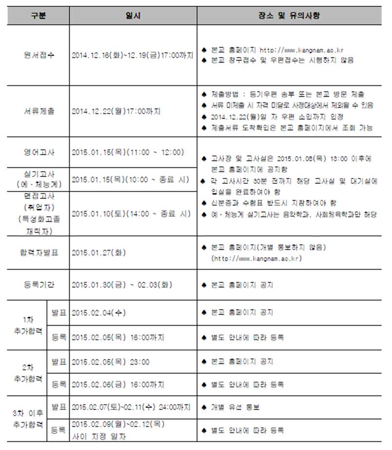 [2015학년도] 강남대학교 모집요강 안내드립니다.