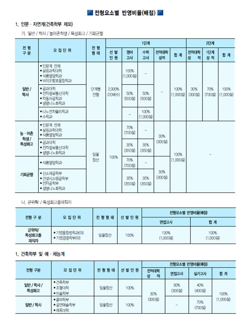 [2015학년도] 고려대학교(세종) 전형요소 및 반영비율 안내드립니다.