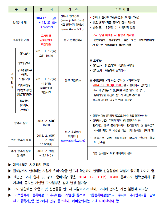 [2015학년도] 국민대학교 모집요강 안내드립니다.