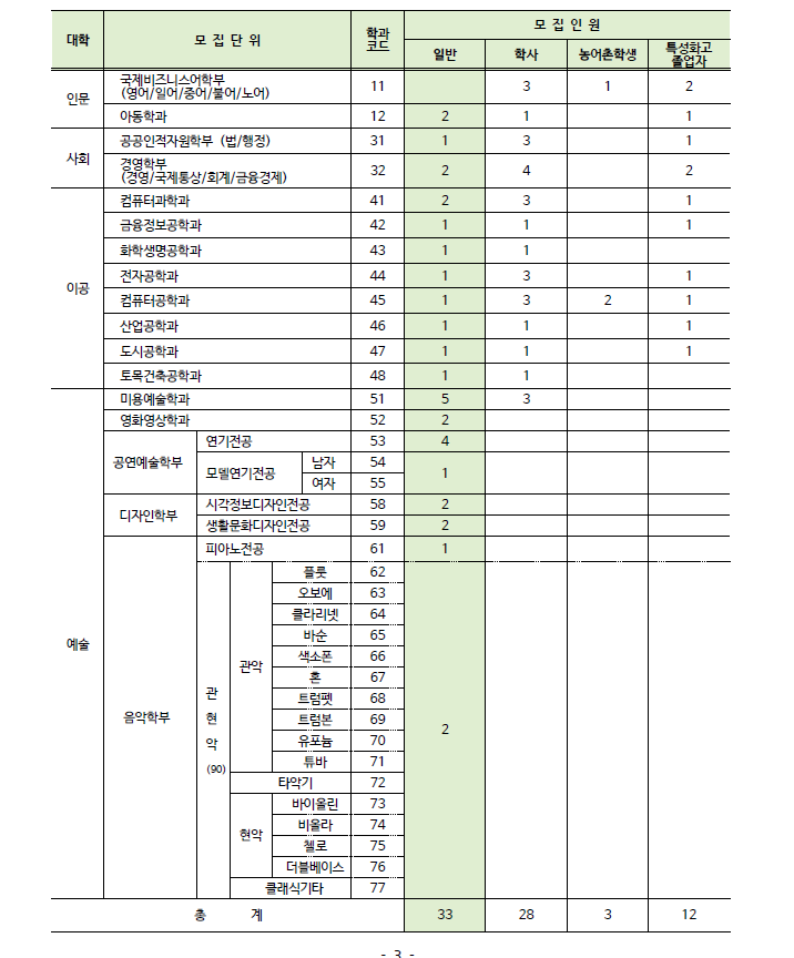 ■ 모집단위 및 모집인원