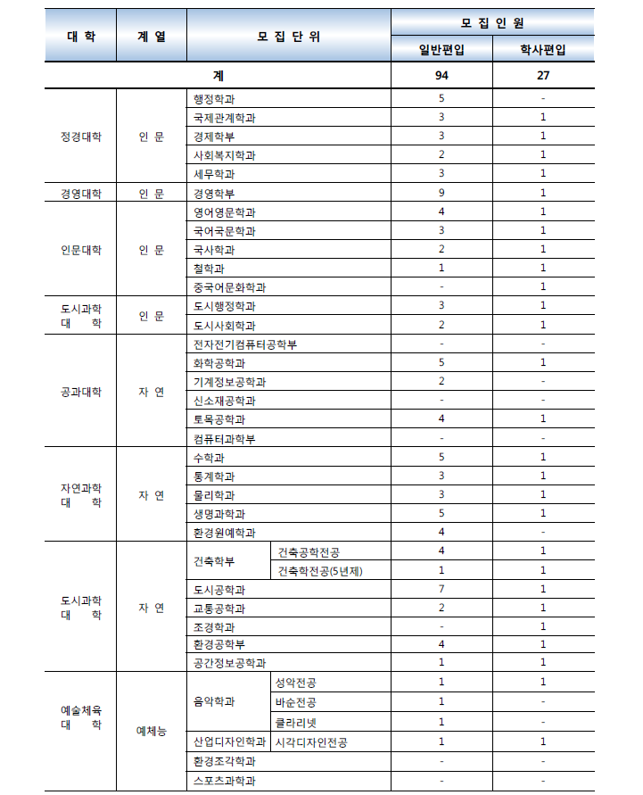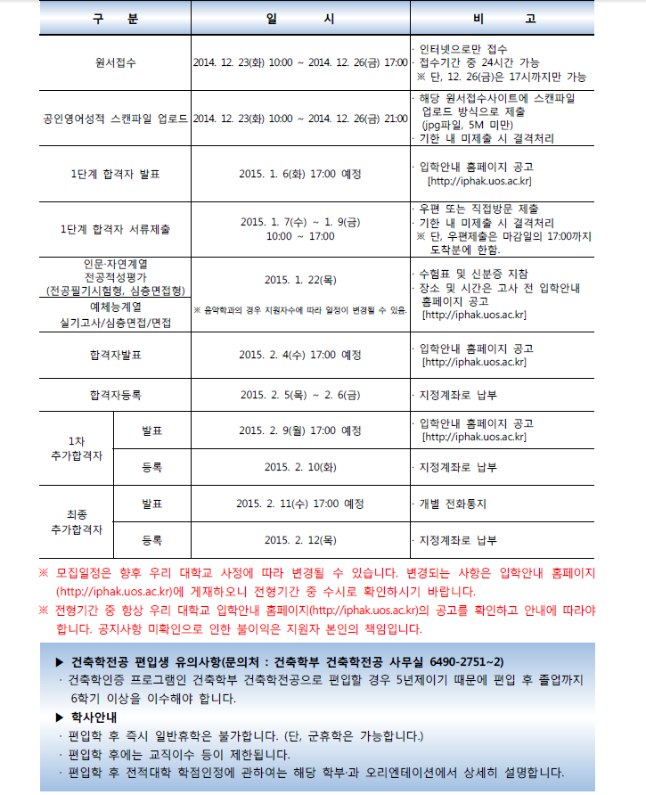 [2015년도] 서울시립대학교 편입학 모집요강 안내드립니다.