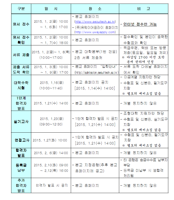 2015학년도 서울과학기술대학교 편입학 모집요강 안내드립니다.