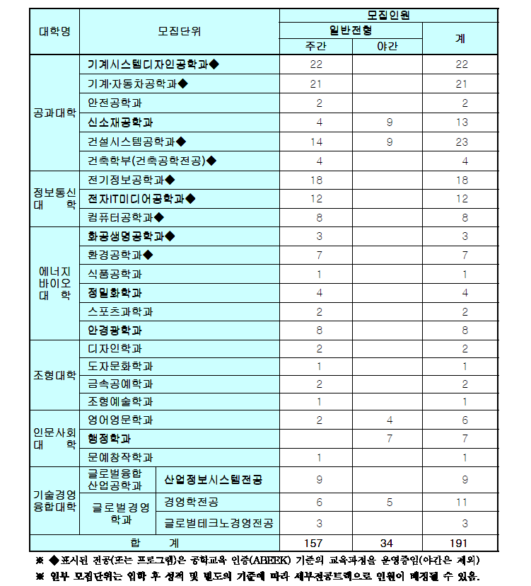 ■ 모집단위 및 모집인원