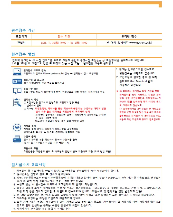 글제목 2016학년도 가천대학교 편입학 모집요강 안내드립니다.