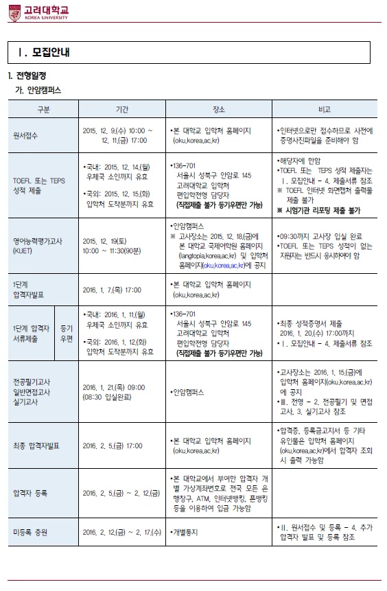 1842 일반 2016학년도 고려대학교 [안암] 편입학전형 일정 안내드립니다.    2015-11-17
