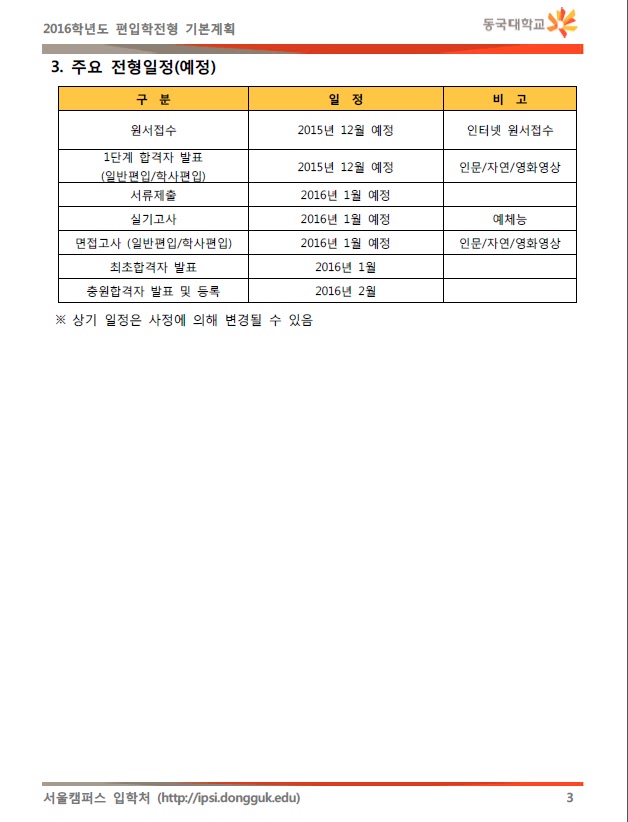 안녕하세요. 상위권대학 편입명문 해커스편입입니다. [2016학년도] 동국대 편입학전형 기본계획(안) 입니다.