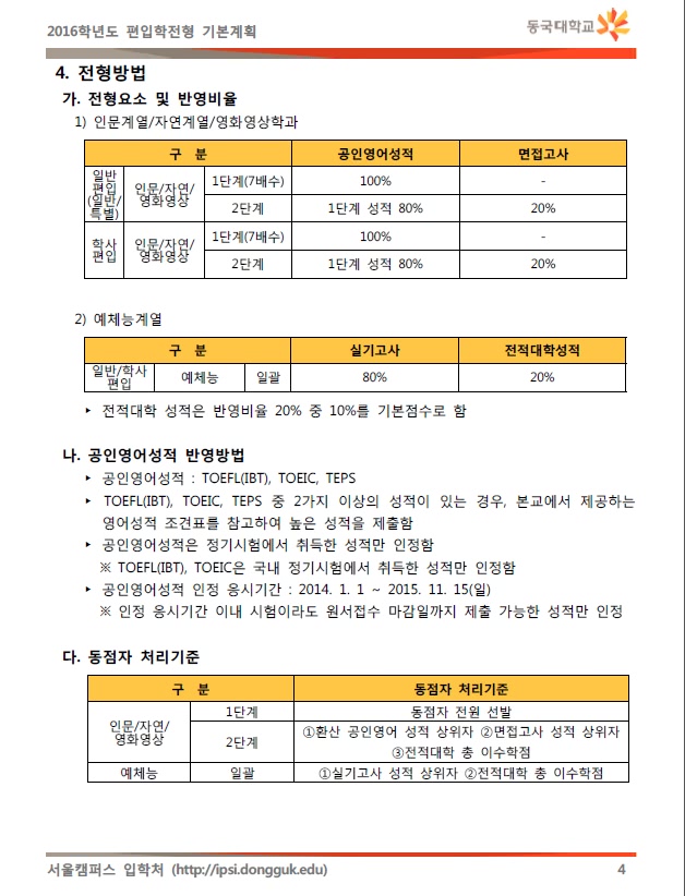 | 글제목 | [2016학년도] 동국대 편입학전형 기본계획(안) 입니다. | |||||
