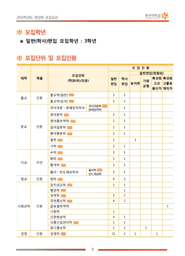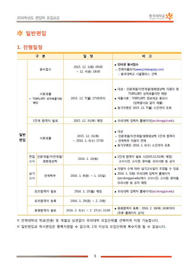 2016학년도 동국대학교 최종 모집요강 안내드립니다.