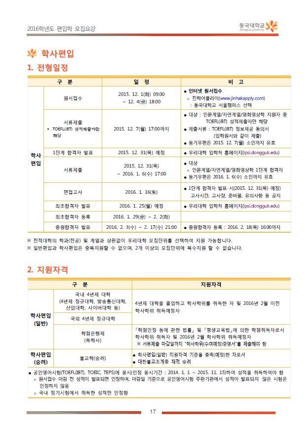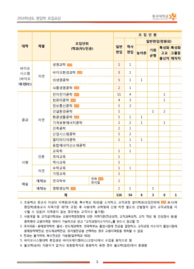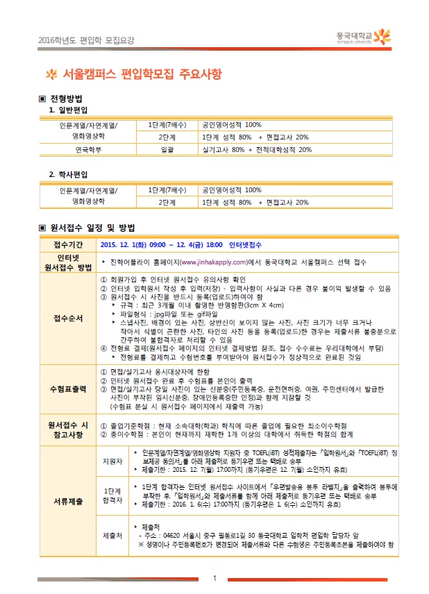 글제목 2016학년도 동국대학교 최종 모집요강 안내드립니다.
