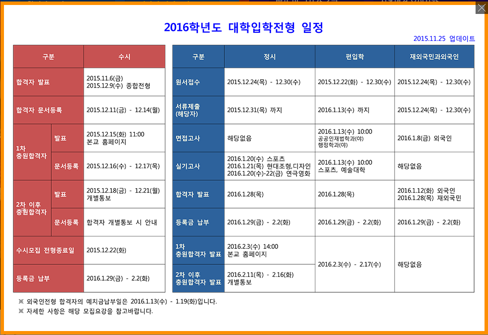 2016학년도 단국대학교(죽전) 모집요강 일정 안내드립니다.