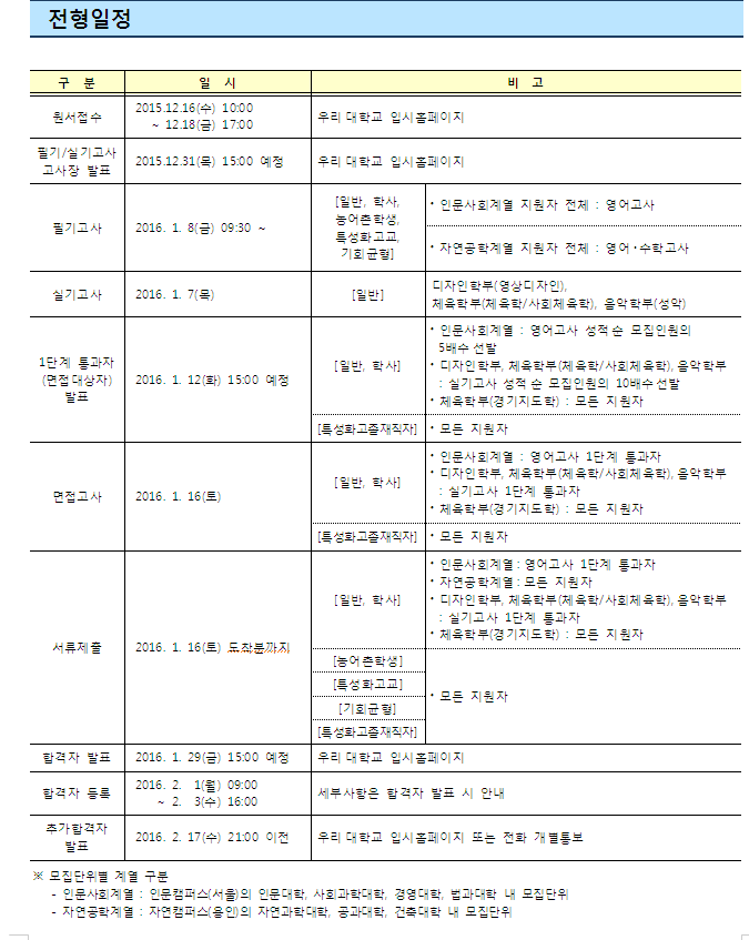 1811 모집요강 2016학년도 단국대학교(천안) 모집요강 일정 안내드립니다.    2015-11-26