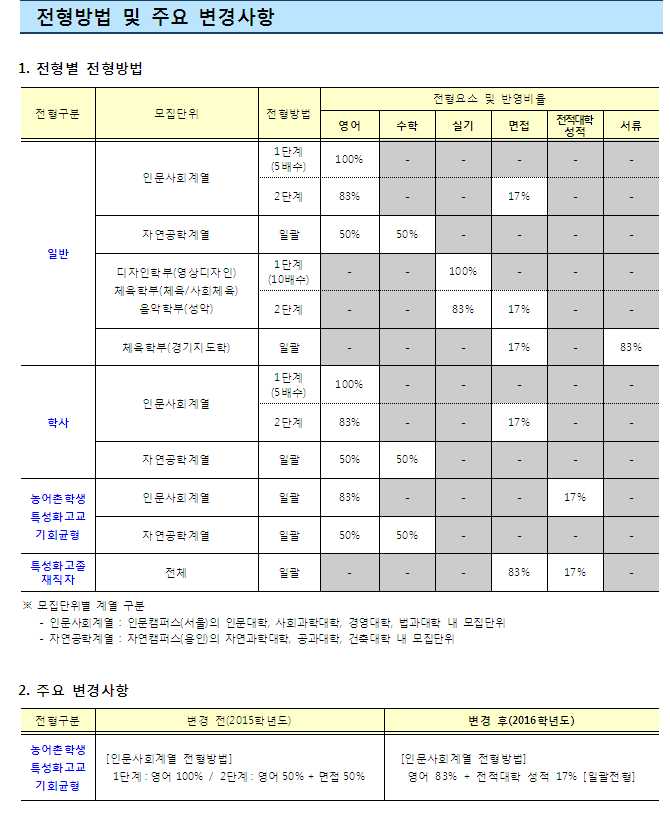 2016학년도 명지대학교 편입학 주요사항 안내드립니다.