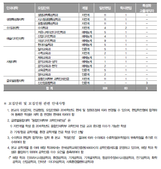 2016학년도 경희대학교 편입학 최종 모집요강 안내드립니다.