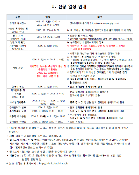1851 일반 2016학년도 인하대학교 편입학 전형 안내드립니다.    2015-12-03