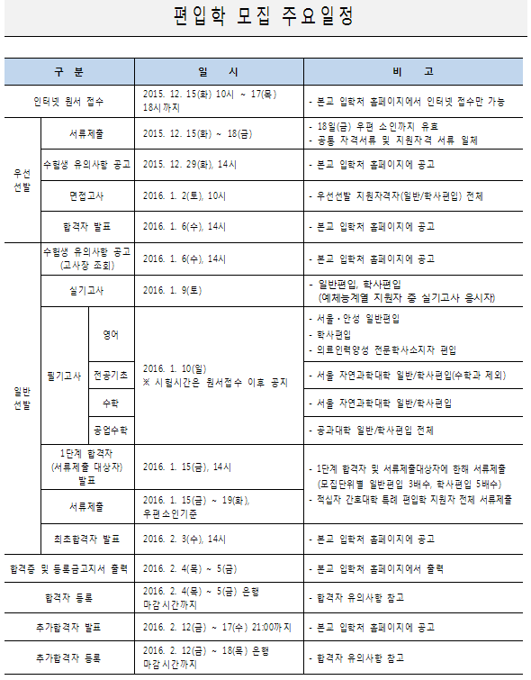 2016학년도 중앙대학교 편입학 주요사항 안내드립니다.