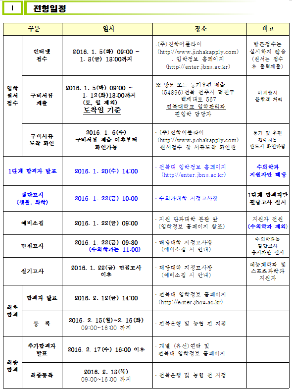 글제목 2016학년도 전북대학교 편입학 모집요강 안내드립니다.