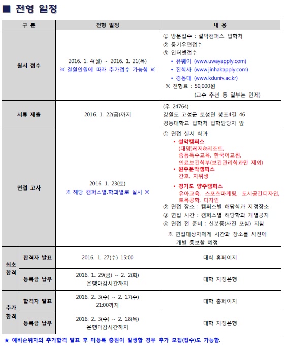 2016학년도 경동대학교 편입학 모집요강 안내드립니다.