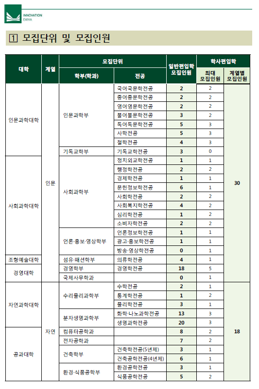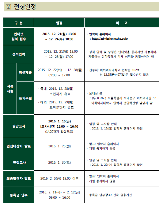 2016학년도 이화여자대학교 편입학 모집요강 안내드립니다.