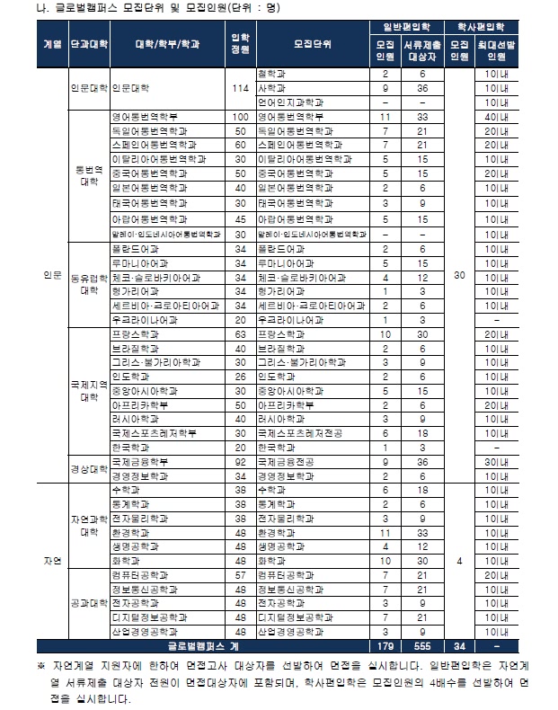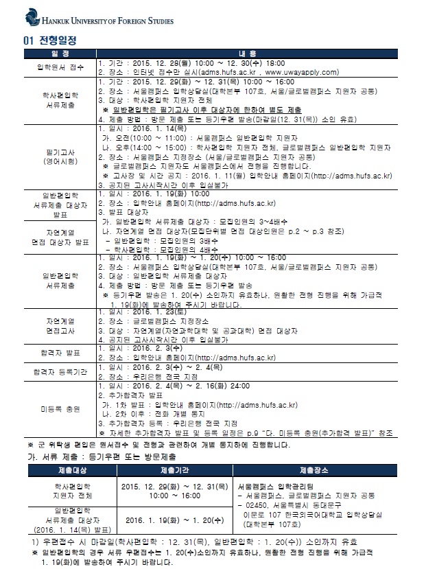 2016학년도 한국외국어대학교 편입학 모집요강 안내드립니다.