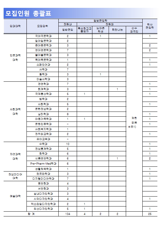 2016학년도 덕성여자대학교 편입학 일정 및 모집인원 안내드립니다.