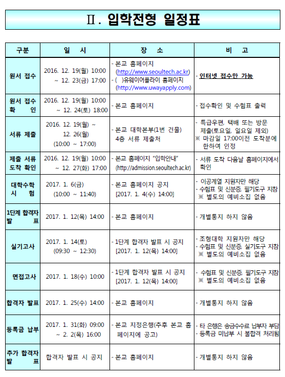 글제목 [2017학년도] 서울과학기술대학교 편입학 모집요강 안내드립니다.