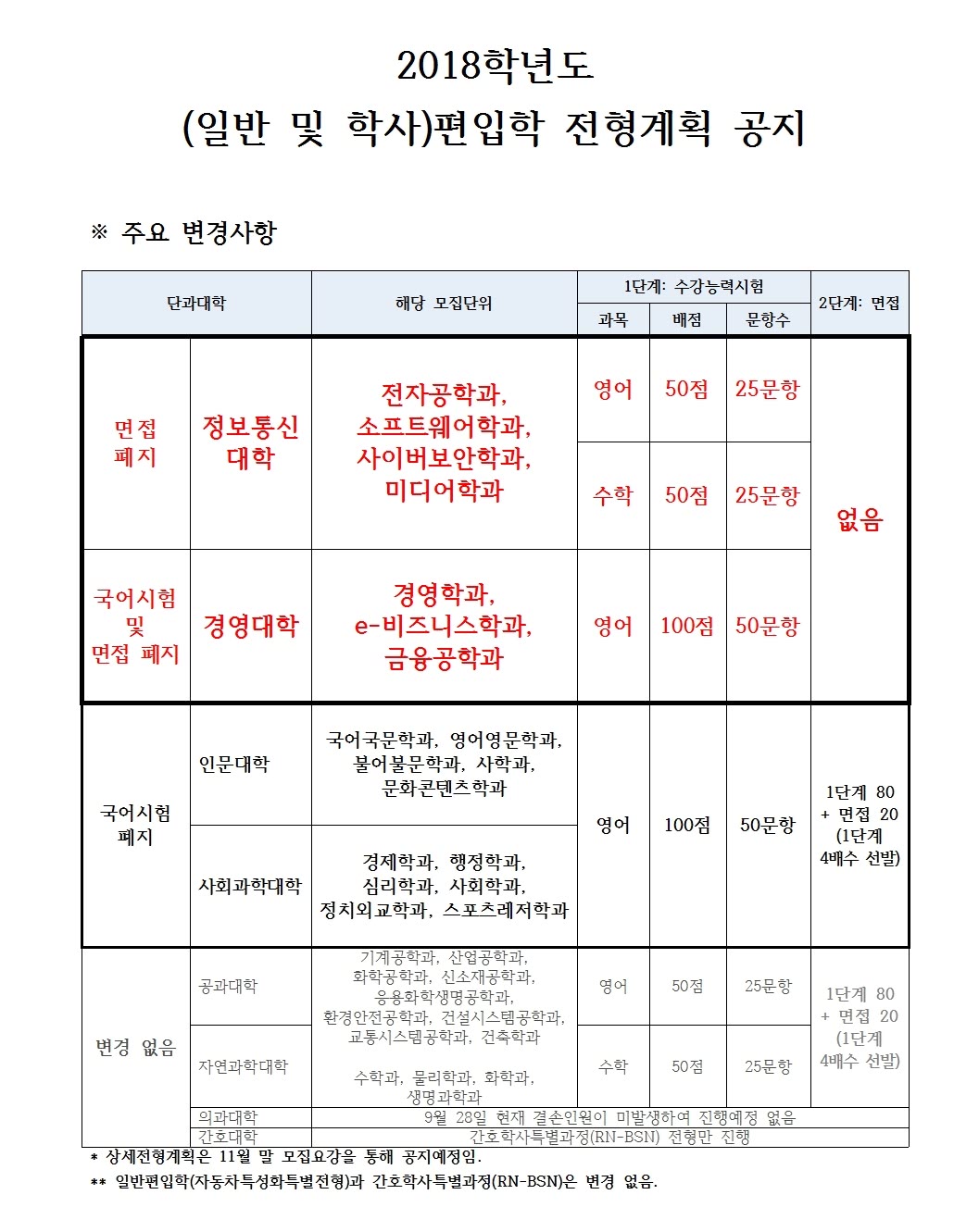 해당 정보는 편입학 전형 계획에 대한 안내이며,