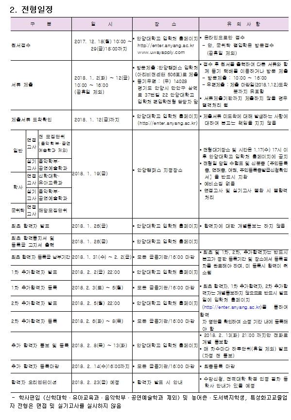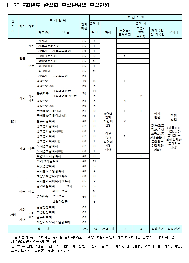 [2018학년도] 안양대학교 최종 모집요강입니다.