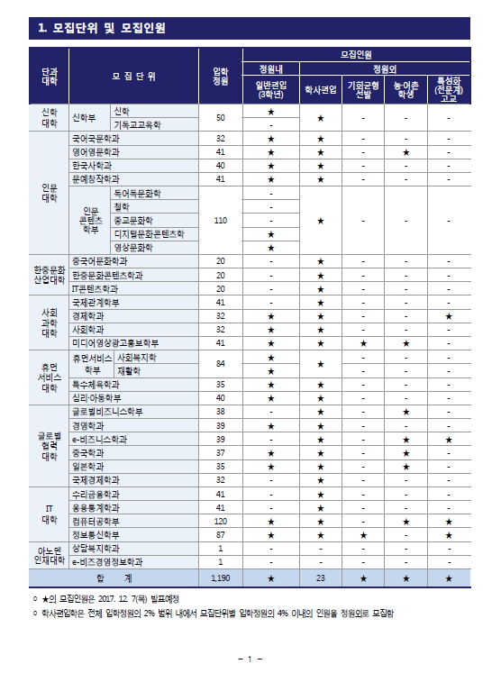 글제목 [2018학년도] 한신대학교 최종 모집요강입니다.