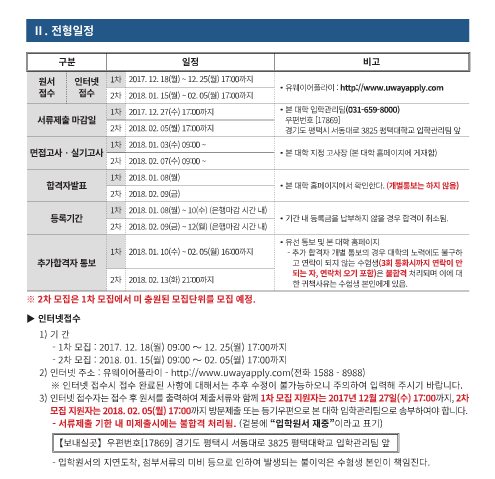 글제목 [2018학년도] 평택대학교 최종 모집요강입니다.