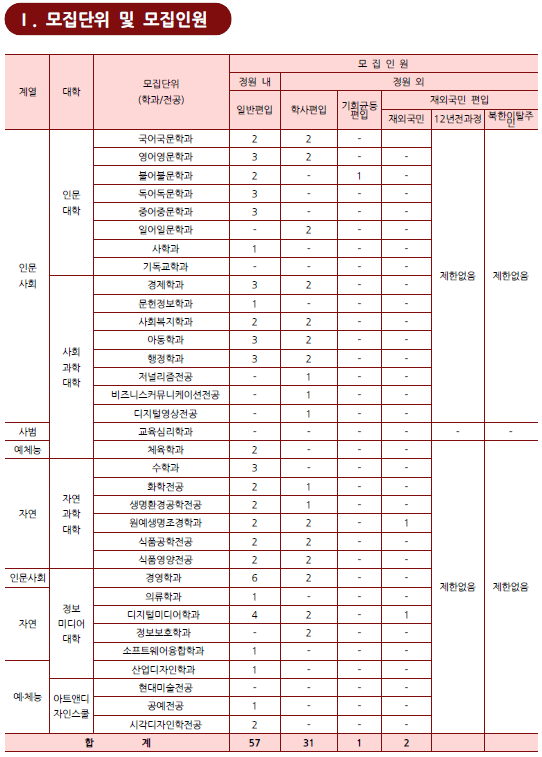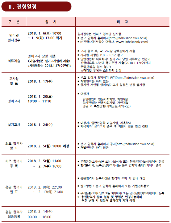 2018학년도 서울여자대학교 최종 모집요강입니다.