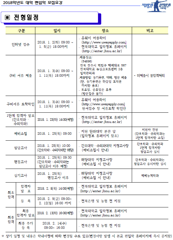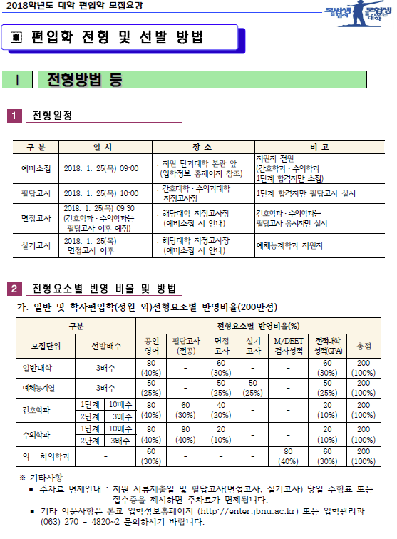 글제목 [2018학년도] 전북대학교 최종 모집요강입니다.