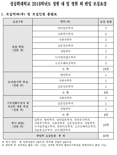 2018학년도 성공회대학교 최종 모집요강입니다.