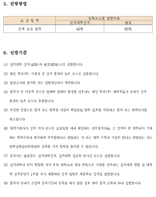 전형일정 및 전형방법