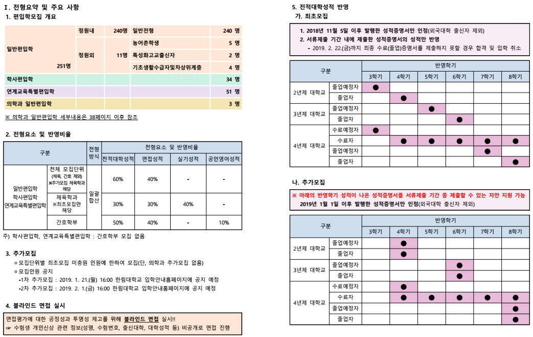 2019학년도 한림대학교 최종 모집 요강 공유드립니다