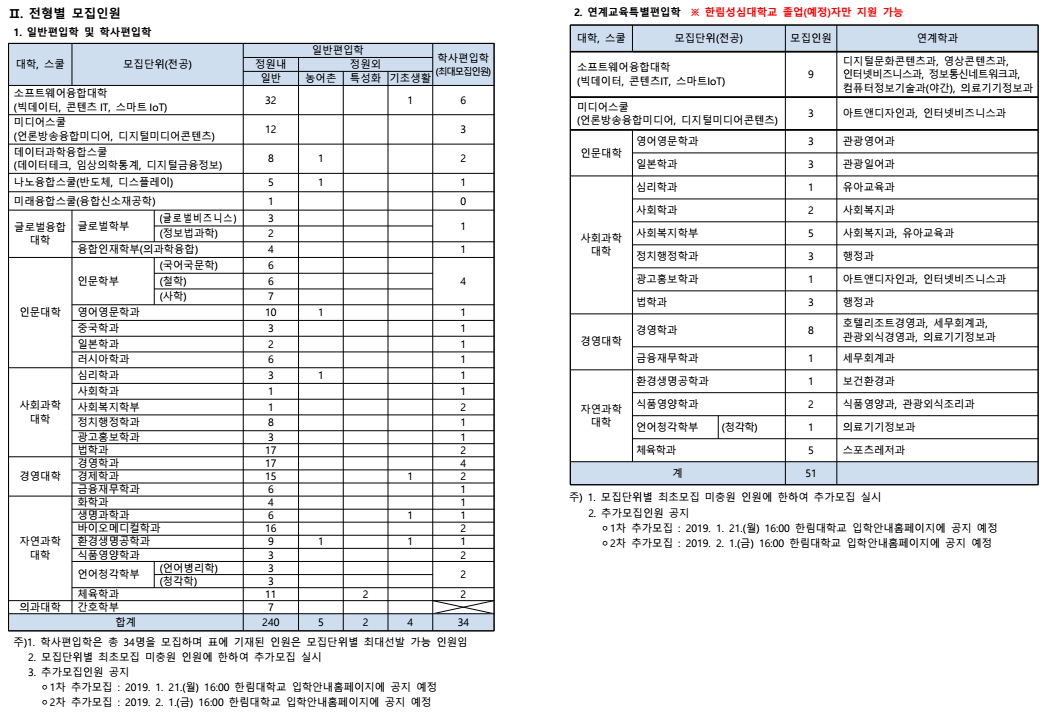 글제목 [2019학년도] 한림대학교 최종 모집요강 안내