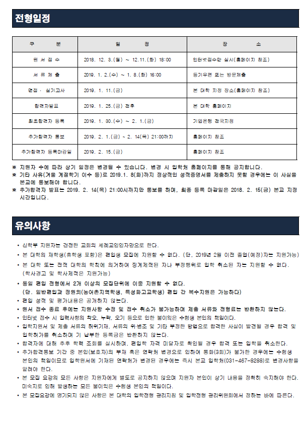 [2019학년도] 성결대학교 최종 모집요강입니다.