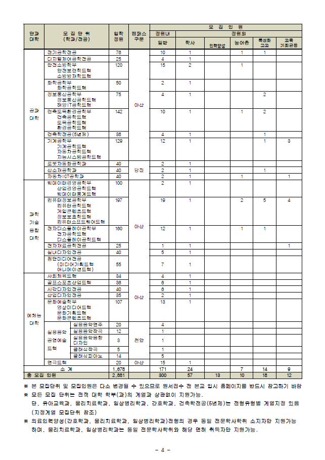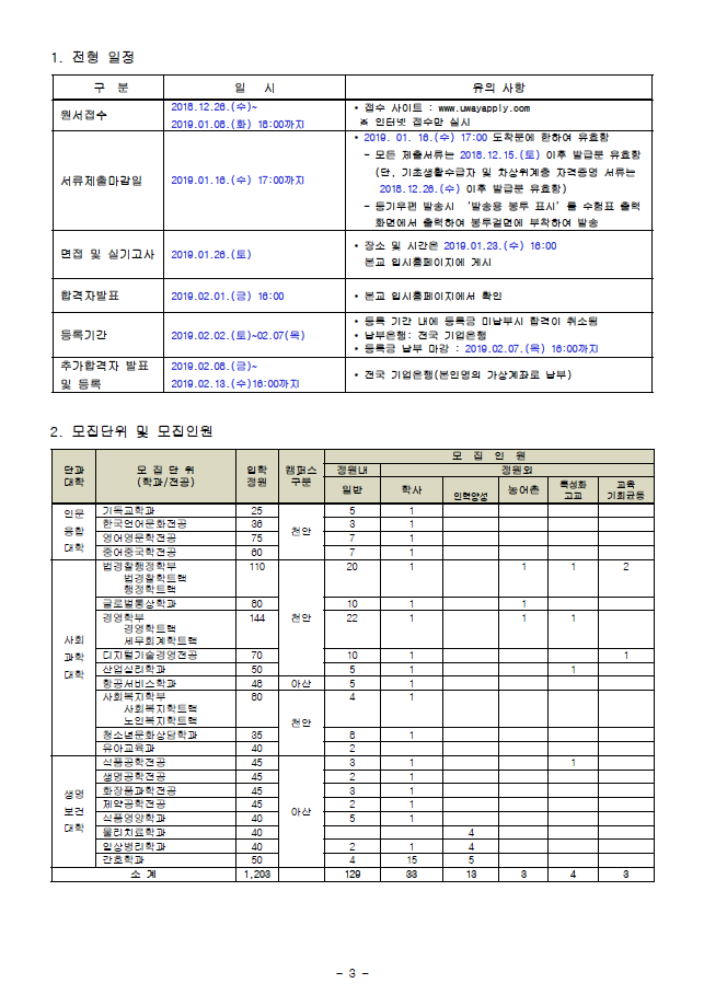 * 편입학 안내 : 입학처(TEL.041-540-5072,5075~6) * 상기 일정은 학내 사정에 따라 변경될 수 있음(변경사항 발생시 본교 입시홈페이지에 공지)