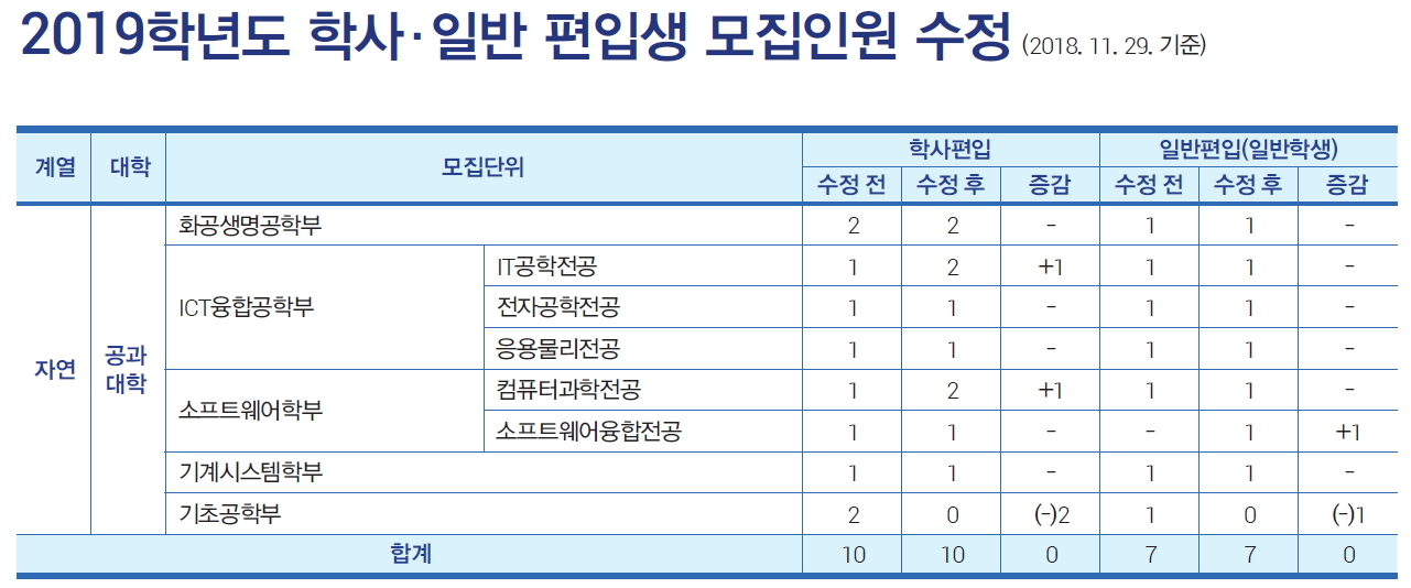 [2019학년도] 숙명여자대학교 편입학 모집요강 변경사항 안내드립니다.