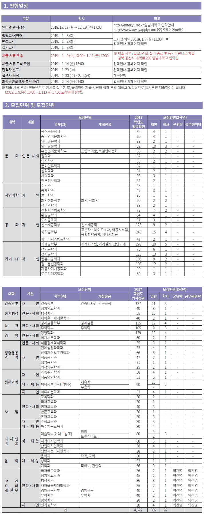 [2019학년도] 영남대학교 최종 모집요강 안내