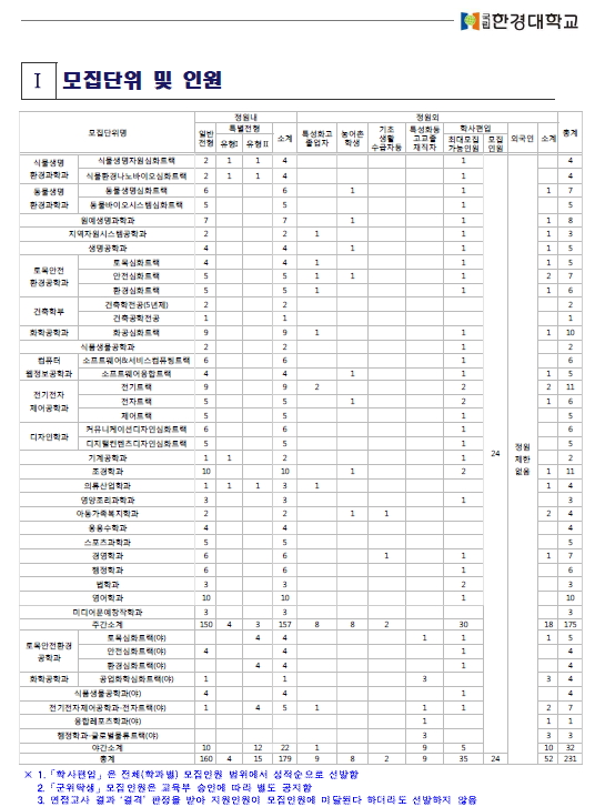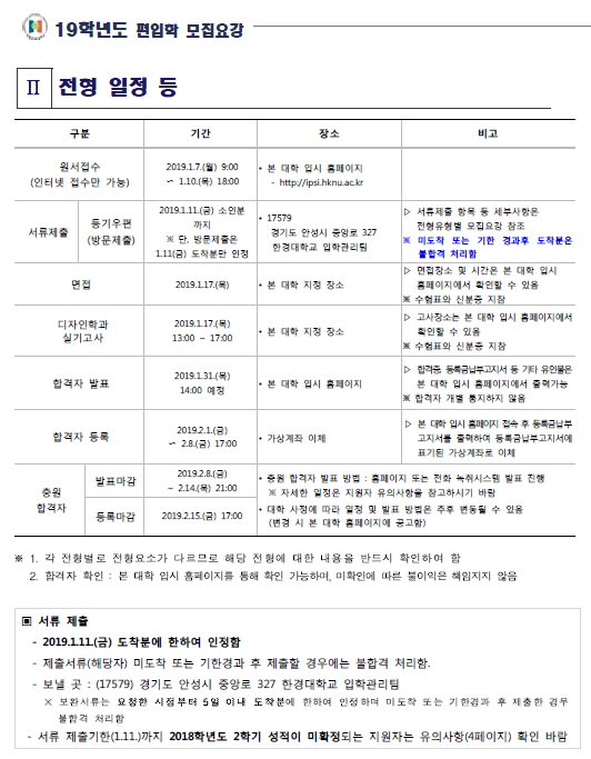 [2019학년도] 한경대학교 최종 모집요강 안내