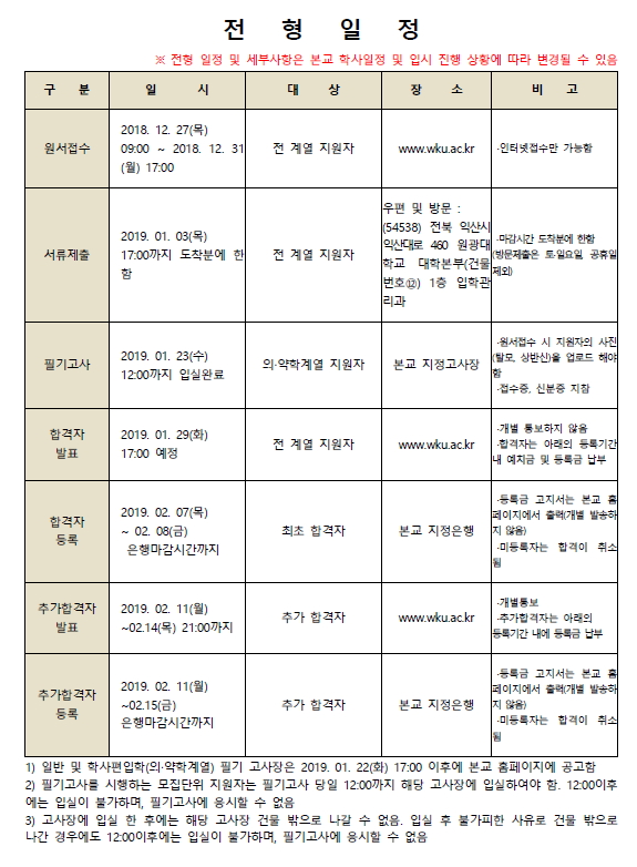 [2019학년도] 원광대학교 최종 모집요강 안내