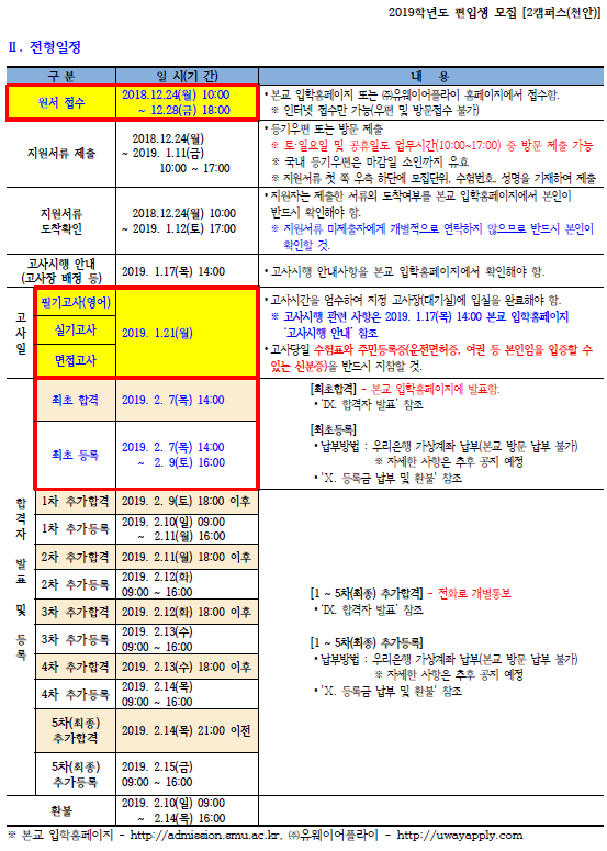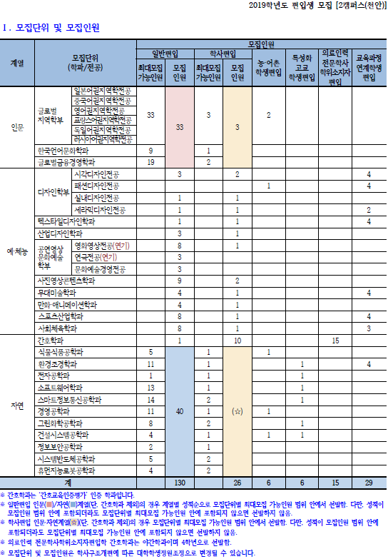 2019학년도 상명대학교(천안) 최종 모집요강입니다.